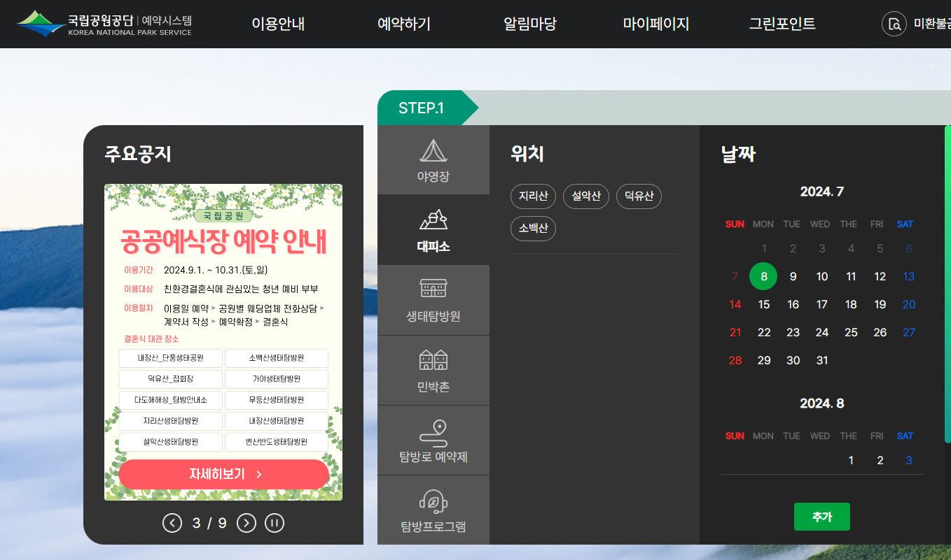 요새 여행을 가는 분들이 많아지면서 국립공원관리공단 예약통합시스템을 이용하는 이용객이 더욱 많아졌는데요. 인기가 많아서 야영장 이용하실 분들은 미리미리 예약하시는 걸 추천드릴게요.