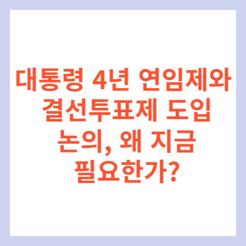 2025년 대한민국은 정치적 전환점에 서 있습니다. 윤석열 전 대통령 탄핵 이후 치러지는 조기 대선을 맞아, 정치권에서는 ‘대통령 4년 연임제’와 ‘결선투표제’ 도입 논의가 다시금 불붙고 있습니다. 단순한 제도 개정이 아닌, 민주주의의 본질인 ‘대표성과 책임성’ 강화를 위한 논의입니다. 이 글에서는 대통령 4년 연임제의 의미, 장단점, 결선투표제가 필요한 이유, 그리고 해외 사례와 경제에 미칠 영향까지 자세히 분석해보겠습니다.