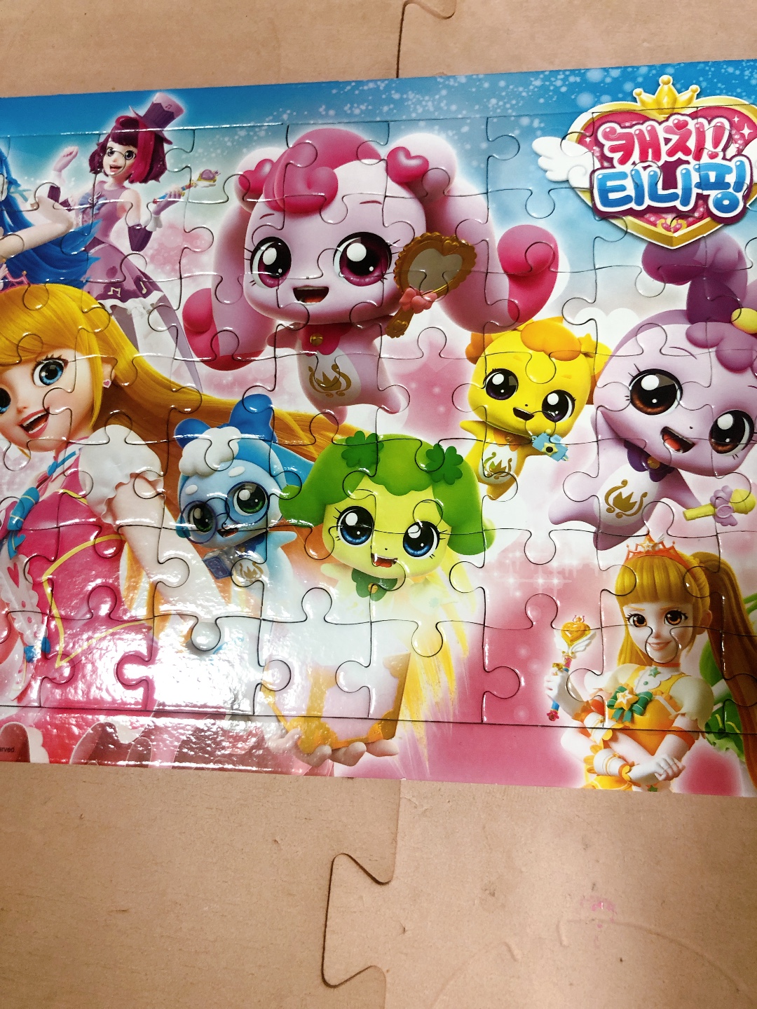 그러고 나서 지난 시간에 이은 퍼즐게임을 진행했는데요. 이번 시간에 맞춘 퍼즐은 캐치티니핑! 자주 했던 퍼즐이라서 금세 맞출 수 있었어요.