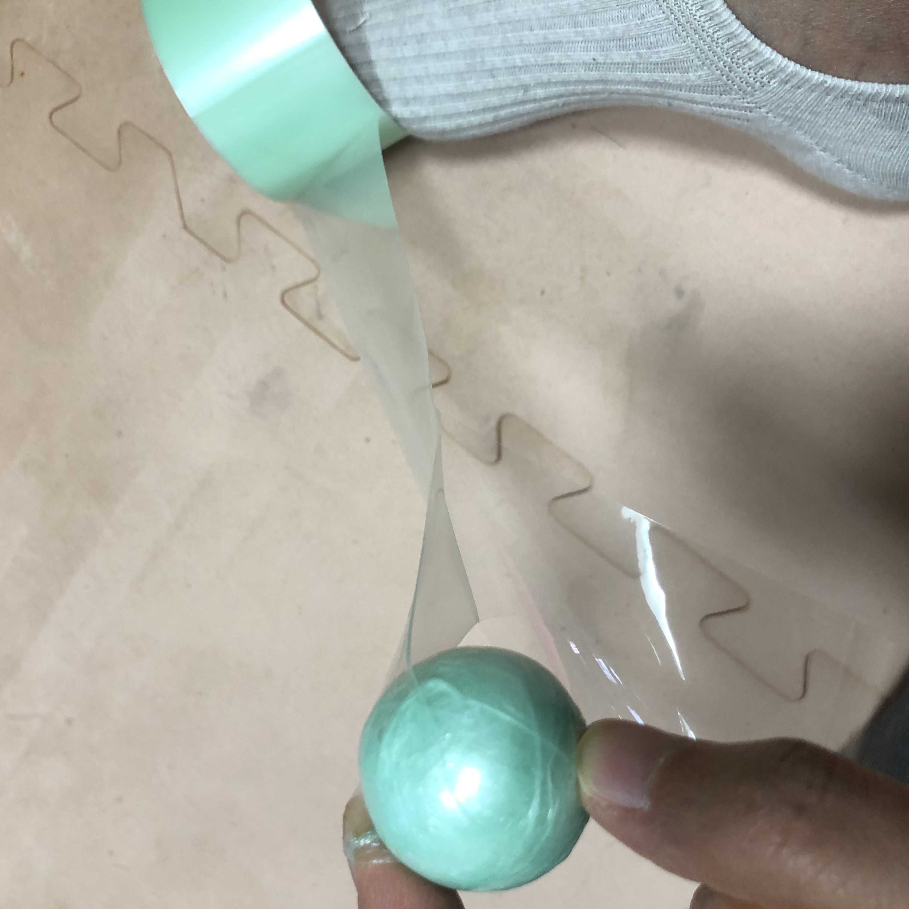 한쪽 발에 테이프를 끼고 테이프를 잡아당기면서 말면 더 쉽게 공을 만들 수 있다는 꿀팁을 전수해줘서 말해준 대로 열심히 해보았어요. 한 동안 집중해서 테이프볼을 열심히 만들어 보았는데요.