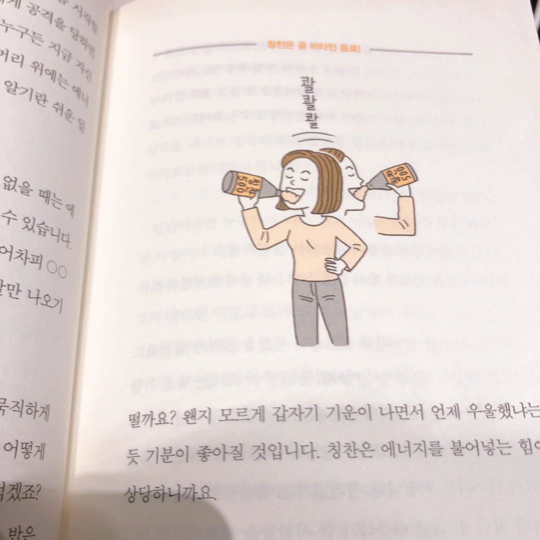 어떠한 일에 부딪혔을 때, 길이 보이지 않을 때 이 책을 자주 꺼내보면 좋을 거 같다는 생각이 드네요. 책의 저자가 칭찬을 강조하고 있으니 오늘 만나는 3명 이상의 사람에게 칭찬의 말을 건네야겠다는 생각이 드네요