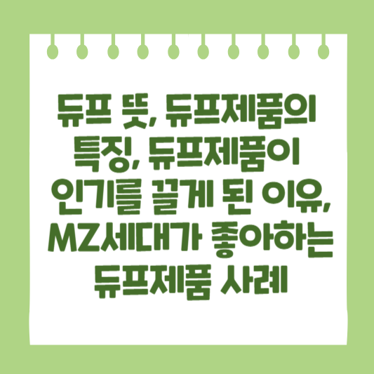 듀프 제품은 MZ세대의 경제적 현실과 소비 성향을 반영한 결과물로, 앞으로도 계속해서 그 인기가 이어질 것으로 보입니다. 가성비와 실용성을 중시하는 소비 트렌드, 빠르게 변화하는 유행에 맞춘 디자인, 그리고 소셜 미디어에서의 인증 문화 등 다양한 요인이 맞물려 듀프 제품은 새로운 소비 트렌드를 선도하고 있습니다.