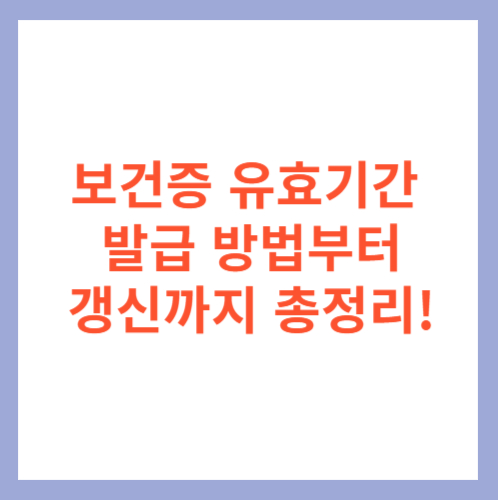 보건증 필수 정보! 보건증(건강진단결과서) 유효기간은 얼마나 될까요? 유효기간이 지나면 어떻게 갱신해야 할까요? 이 글에서는 보건증 발급 방법, 유효기간, 갱신 방법까지 한 번에 정리해 드립니다.