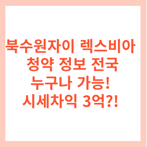 이번 북수원자이 렉스비아 무순위 청약은 2025년 가장 핫한 청약 기회로 평가됩니다. 높은 시세차익과 무순위 청약 조건을 고려할 때, 청약 자격이 되는 분이라면 꼭 신청해보시길 추천드립니다. 🚀