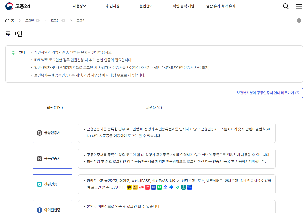 1. 고용 24 사이트에 접속해서 지원자격을 확인 https://www.work24.go.kr/cm/main.do#none