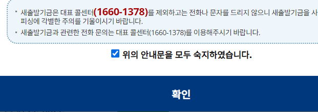 - 새출발기금 신청하기를 선택하고 새출발기금 제도 안내 및 신청 유의사항 안내문을 모두 숙지하였다는 안내문을 확인합니다.