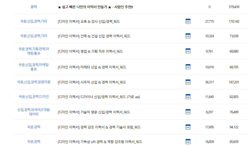 안녕하세요 취업준비나 아르바이트할 때 가장 어려운 부분이 이력서 쓰는 일인 거 같아요. 이력서 써야 한다고 하면 뭔가 막연하면서 어떻게 써야 할지 모르겠고 답답할 때가 있는데 이력서 양식은 어떻게 다운로드하는지 몰라서 그게 큰일이 되기도 하더라고요. 그래서 준비해 봤는데요! 이력서 양식을 무료로 다운로드할 수 있는 사이트 링크를 준비했어요~!