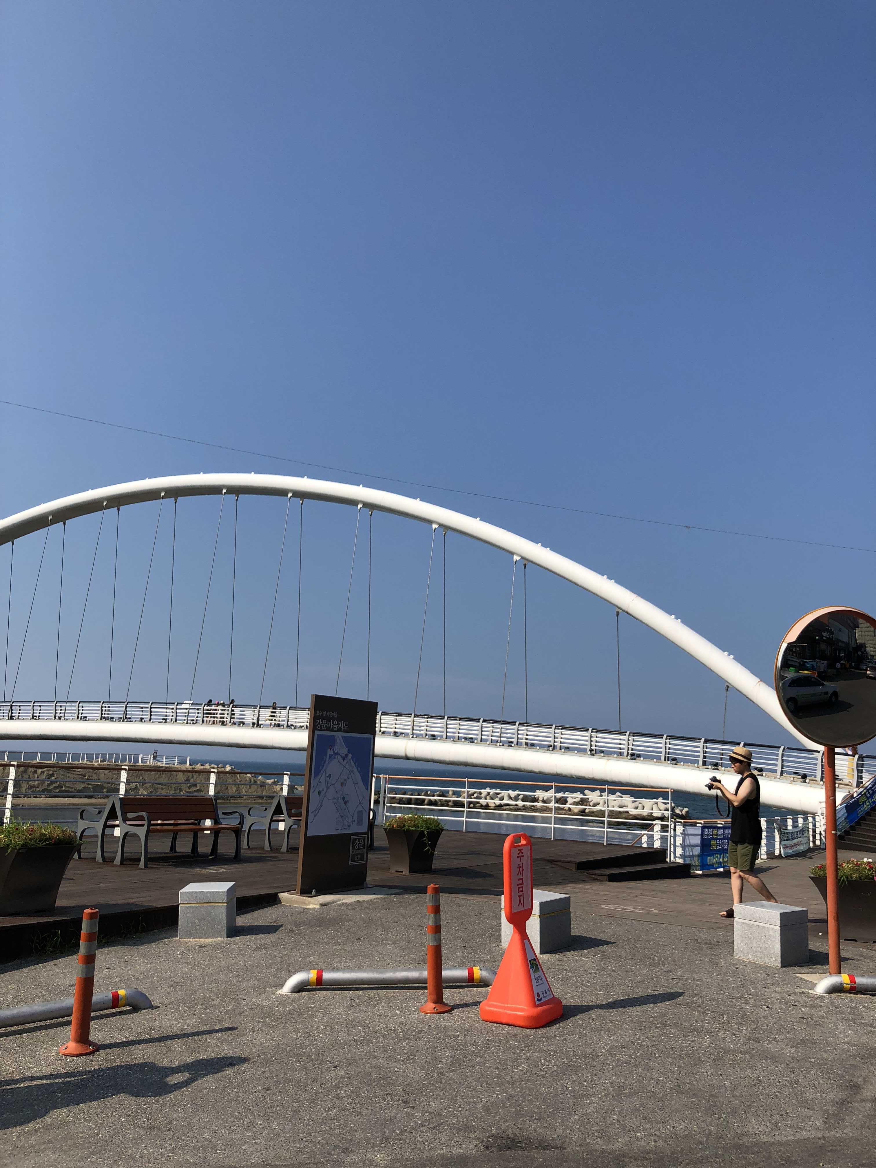 강릉 오면 뭐니 뭐니 해도 바다를 보고 가야죠. 사진 속 해변은 바로 강문해변입니다. 강문해변도 강릉에서 아름다운 해변으로 유명한 만큼 여행객들이 정말 많았던 곳이에요. 다리 위를 거닐면서 지나다니는 것도 재미있는 포인트 중 하나예요.