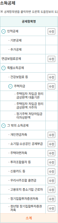 연말정산 미리보기 서비스 공제항목