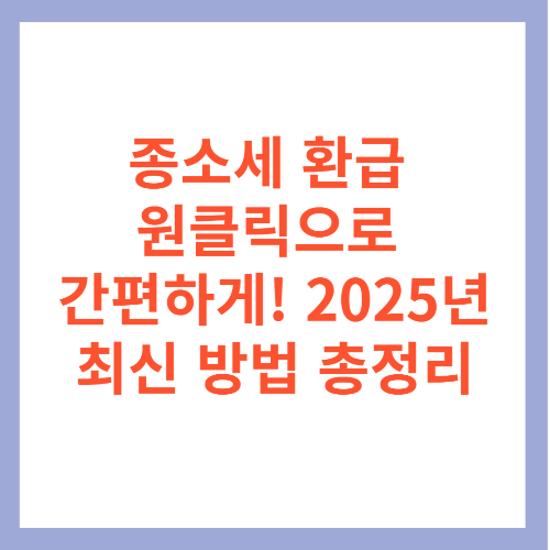 종소세 환급 원클릭으로 간편하게! 2025년 최신 방법 총정리
