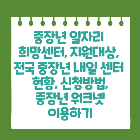 - 온라인 신청: 중장년 워크넷 홈페이지를 통해 간편하게 신청할 수 있습니다.