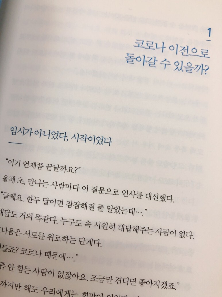 코로나 이전으로 돌아갈 수 있을까? 저도 2020년 코로나가 처음 시작되었을 때는 그렇게 생각했었던 것 같아요.그런데 지금은 코로나와 공존해 살아가는 것이 너무나도 익숙해져 버린 세상에 살고 있네요. 그 변화에 적응해 살아가고 있기 때문에 조금 더 내가 살아가야 할 방향성에 대해 열심히 고민해야 된다는 사실.
