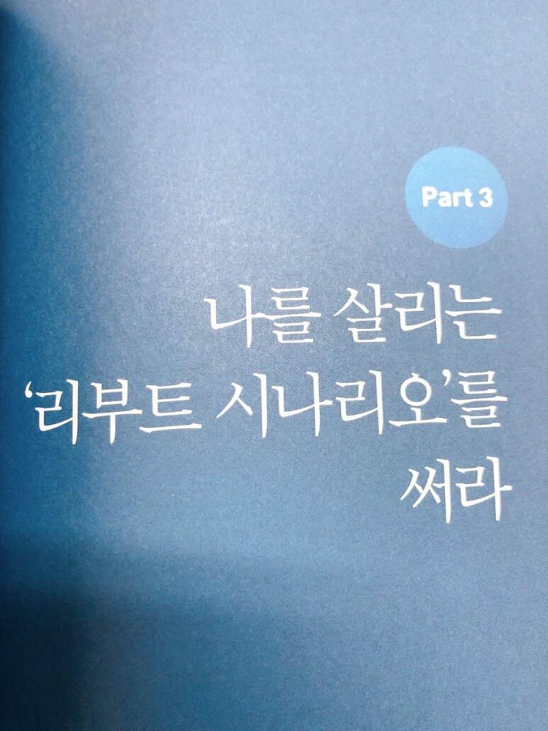 PART3 나를 살리는 '리부트 시나리오'를 써라는 내용인데요. 평소에 저희 남편에게 어떤 일을 할 때 시나리오를 쓰는 걸 좋아한다는 이야기를 종종 듣곤 했는데 저자가 그 점에 대해서 책에서 강조하고 있어서 조금 놀랐네요. 시나리오를 썼을 때 나와 세상을 조금 더 면밀히 분석할 수 있고 내가 그린 시놉시스를 지속적으로 수정해나갈 수 있기 때문이에요. 이 책을 읽으며 저도 저만의 인생 시나리오를 써야 한다는 것을 깨달을 수 있었어요.