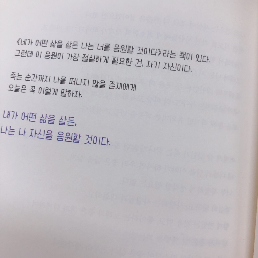 나는 나 자신을 언제나 응원한다. 저도 제 삶을 언제나 응원하고 있어요. 그리고 제 주위에 있는 사람들의 삶도 함께 응원하고 있어요 :)
