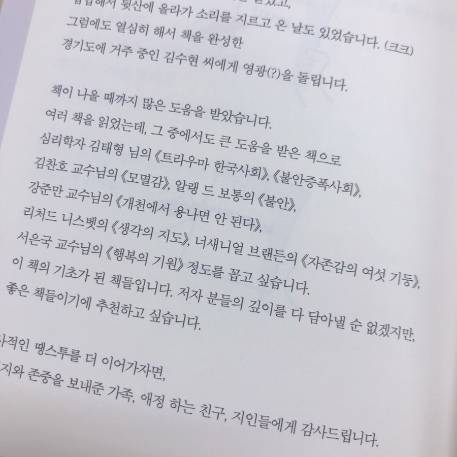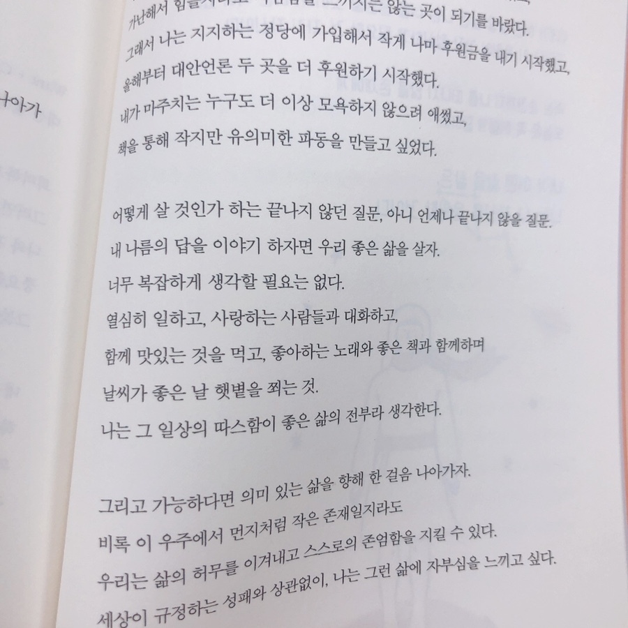 전반적으로 에세이 형식의 글들이 적혀있고 현실에서 공감될만한 이야기들이 있는 책이랍니다. 그중 인상 받은 몇몇 부분들을 함께 공유해 보려고 해요 :)