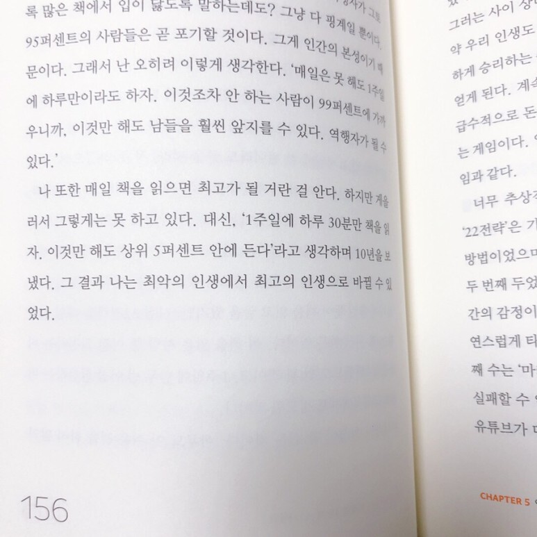 하루 2시간은 책을 읽는 시간으로 정해두고 나머지 시간은 하고 싶은 일들을 했다는 저자. 하루를 살아갈 때 알차게 살아가야 하는 게 잘 사는 것이라는 생각이 있던 저에게 이 글은 참신하게 다가왔어요. 저도 지금은 충분히 쉬는 시간을 통해 뇌를 리프레시하는 방법을 취하곤 하는데 20대 초반에 이러한 점을 깨달았다니.