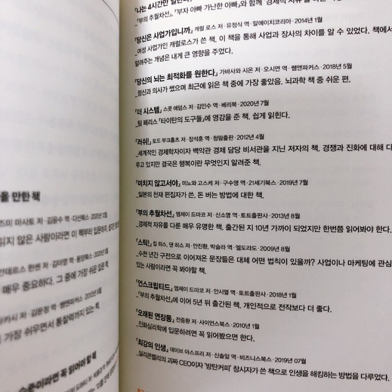 7단계에는 부록과 더불어 저자를 역행자로 만들어 준 책 리스트가 소개되어 있어요. 이미 읽었던 책도 있고 읽지 못한 책들도 있는데 시간을 내어 웬만하면 모두 읽어보려고 해요.