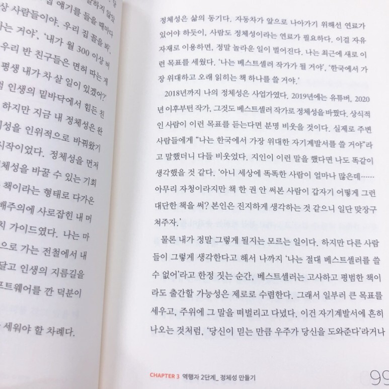 역행자가 되기 위해선 1주일에 하루 30분 만이라도 책을 읽어야 한다고 책에 대한 강조를 여러 번 하고 있어요. 책에서 말하는 것들 중에 일정 부분 이미 제가 실행하고 있는 것들이 있어서 이미 역행자의 길로 걸어가고 있다는 생각을 하니 제가 가는 방향과 목표에 대한 자신감을 얻을 수 있었네요.