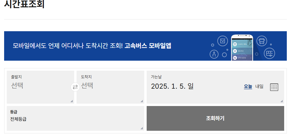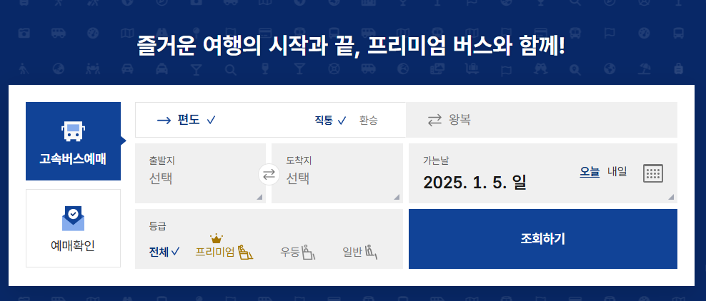 - 도착지: 목적지에 맞는 버스터미널을 선택합니다.