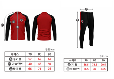 - 트레이닝복은 주문제작 상품으로 사이즈 변경이 불가합니다. 반드시 실측 사이즈표를 확인후 선택이 가능합니다.