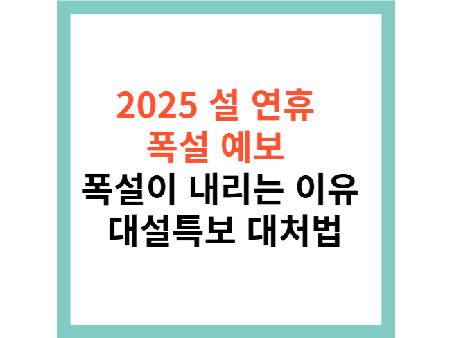 ▤ 목차 다가오는 2025년 설 연휴를 맞아 교통 정보를 소개합니다. 이번 연휴에는 대설특보가 예고되어 있어 설연휴 귀성길에 오르는 분들은 안전 운전하시길 바라겠습니다. 이번 포스팅에